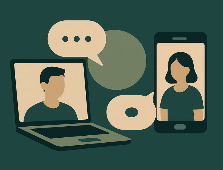 Una modalidad flexible para quienes no pueden (o no desean) coordinar horarios fijos. Nos comunicamos mediante mensajes de audio y texto, cuando lo necesites, los 7 días de la semana. Las respuestas llegarán en diferido, con el mismo nivel de profundidad y entrega.